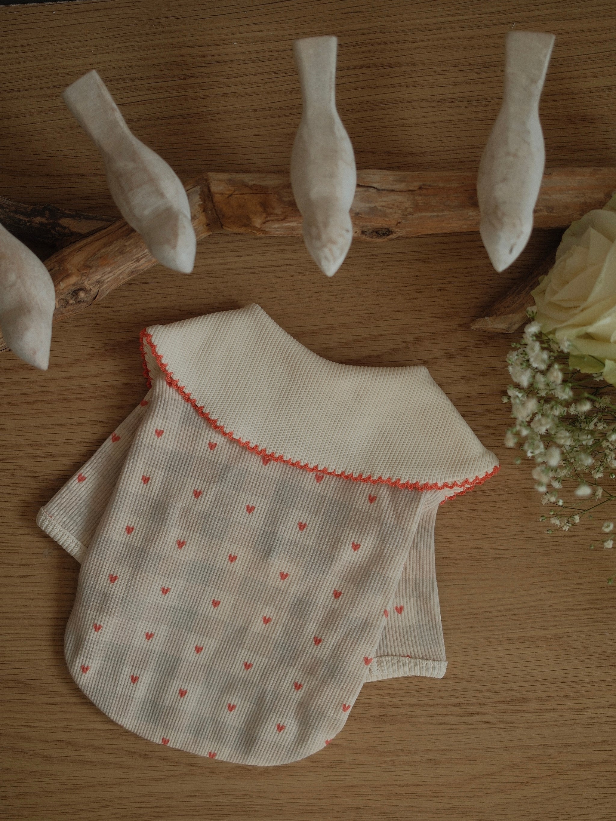 Meet The Lovelette — a timeless blouse for dogs with a soft vintage soul. Featuring an oversized petal collar trimmed in delicate scalloped stitching and finished with a tiny hand-embroidered heart detail, this piece is a love letter to subtle elegance.