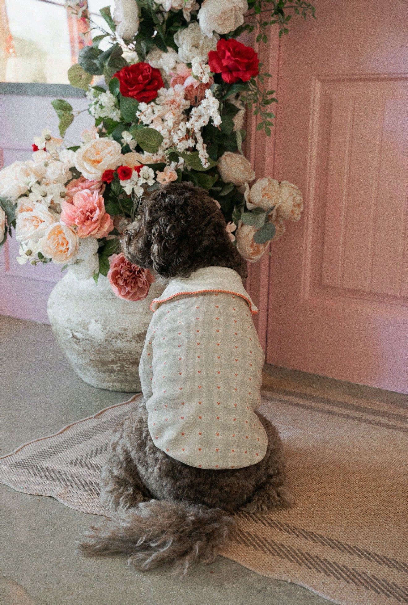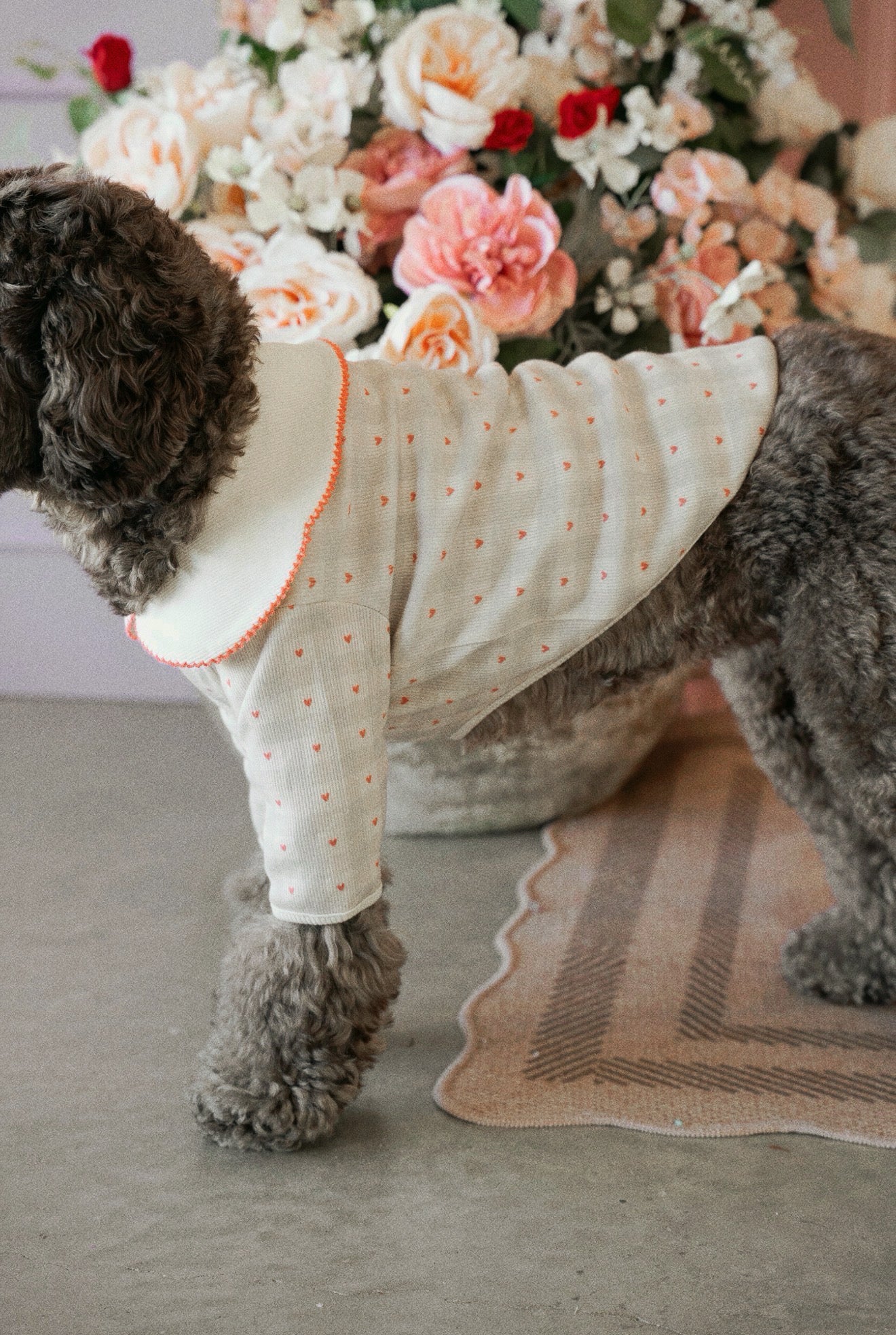 Meet The Lovelette — a timeless blouse for dogs with a soft vintage soul. Featuring an oversized petal collar trimmed in delicate scalloped stitching and finished with a tiny hand-embroidered heart detail, this piece is a love letter to subtle elegance.